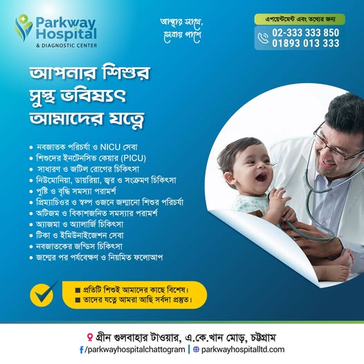 পার্কওয়ে হাসপাতালের আধুনিক পেডিয়াট্রিক বিভাগে রয়েছে শিশুদের জন্য পূর্ণাঙ্গ চিকিৎসা ও বিশেষায়িত সেবা—